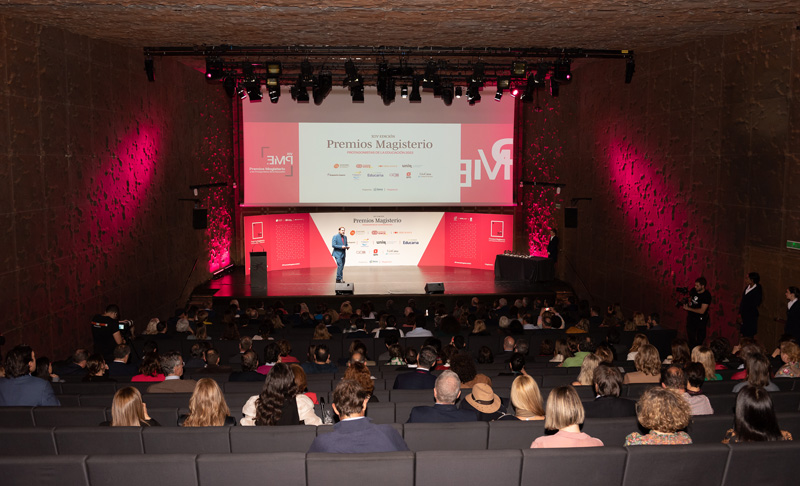 CaixaForum Madrid acogió ayer la entrega de los XIV Premios Magisterio a los Protagonistas de la Educación. La ceremonia, en la que se puso en valor la importancia de la educación en la sociedad y de su transformación para adaptarse a los tiempos que corren, contó con la presencia de Enrique Ossorio, vicepresidente de la Comunidad de Madrid, y Clara Sanz, secretaria general de Formación Profesional del Ministerio de Educación.