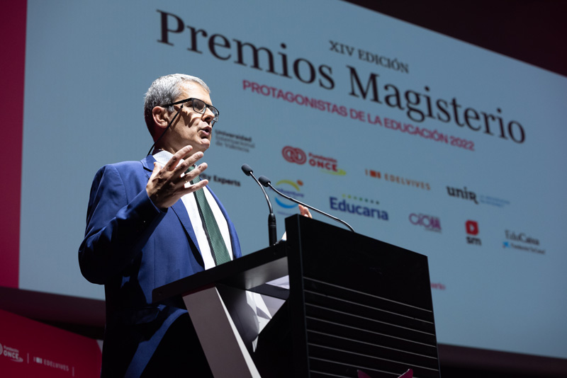 Armando Huerta, director de Comunicación de Prensa Ibérica y maestro de ceremonias, arrancó la gala haciendo balance de lo acontecido a lo largo del año, con especial hincapié en la crisis social, humanitaria y económica derivada de la guerra de Ucrania. En lo educativo destacó la FP, la evolución de la digitalización, la aplicación de la Lomloe y la creciente importancia de la educación emocional y la igualdad en las aulas. “Si queremos acelerar la recuperación, hay que pisar con fuerza el pedal de la educación”, declaró.
