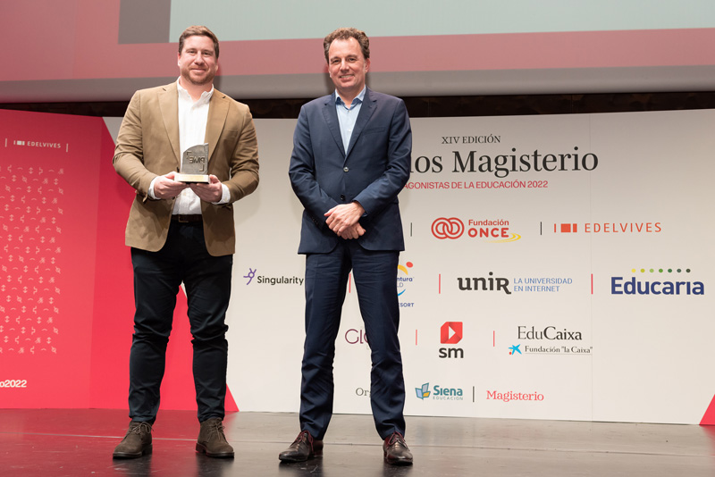 Gonzalo Romero, head of Education de Google España, recoge el premio a Google for Education. Lo entrega Santiago Romero, director general de SM España.