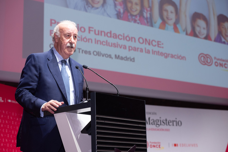 Tras la intervención de la ministra, dio comienzo el acto de entrega de premios. Como novedad en esta XIV edición se concedió el Premio Especial Fundación ONCE Educación Inclusiva para la Integración, otorgado al Colegio Tres Olivos de Madrid y que entregó, junto con el vicepresidente de Fundación ONCE, Vicente del Bosque: “Una de las decisiones más importantes de nuestra vida fue que mi hijo se educara en un colegio de integración”, aseguró el exentrenador y miembro de honor de Down España.