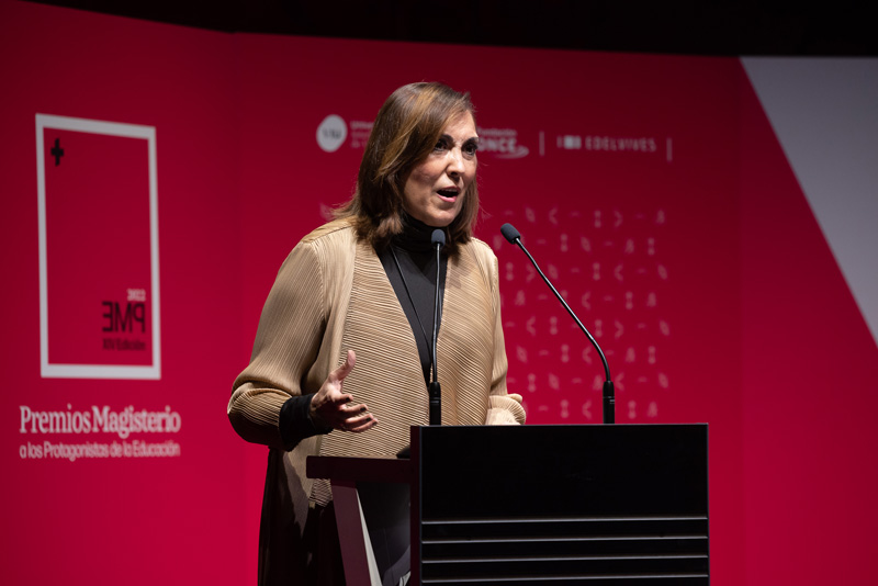 Pese a que no pudo asistir a la gala debido a una cumbre binacional en México, la ministra de Educación, Pilar Alegría, felicitó virtualmente a los galardonados: “Gracias por hacer que los centros educativos sean cada vez mejores”. Después de reconocer a los Premios Magisterio por ser “una referencia en el ámbito educativo”, recalcó que la Lomloe “está impulsando una educación más inclusiva, moderna y basada en competencias”, haciendo también hincapié en temas como la salud mental o la lucha contra el acoso escolar.