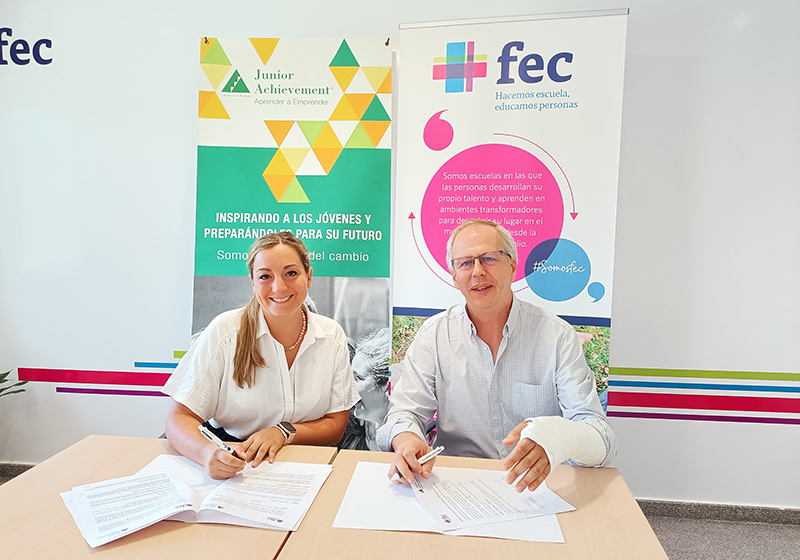 La Fundación Educación Católica y la Fundación Junior Achievement han firmado un acuerdo de colaboración cuyo objetivo es fomentar el emprendimiento entre los jóvenes mediante el aumento de la orientación laboral, la Educación financiera y la educación emprendedora en todas las etapas educativas. Los 22 centros educativos que pertenezcan a la red de colegios FEC que lo deseen podrán participar en los programas educativos de la Fundación Junior Achievement. Ambas instituciones se comprometen a desarrollar esta colaboración a partir del curso escolar 2022-23.