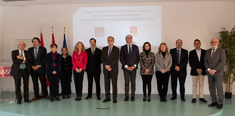 Según las estadísticas del Informe sobre el Estado Mundial de la Infancia de Unicef de 2021, uno de cada siete adolescentes, de 10 a 19 años, en todo el mundo, tiene un trastorno mental diagnosticado. Por ello, la Fundación Alicia Koplowitz, en colaboración con las consejerías de Educación y Sanidad de la Comunidad de Madrid y el Hospital Universitario Gregorio Marañón, han presentado dos programas en salud mental infanto-juvenil, pioneros en España. Dichos programas se desarrollarán por profesionales clínicos en los centros escolares.