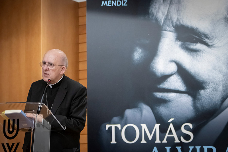 “La vida de don Tomás es una vida corriente: un profesor de enseñanza media, marido, padre, católico… pero su modo de vivir y de estar en la vida no fue corriente, porque lo cristiano no era un adjetivo: era lo sustantivo, y configuró su vida y su existencia”, dijo el arzobispo sobre Tomás Alvira.