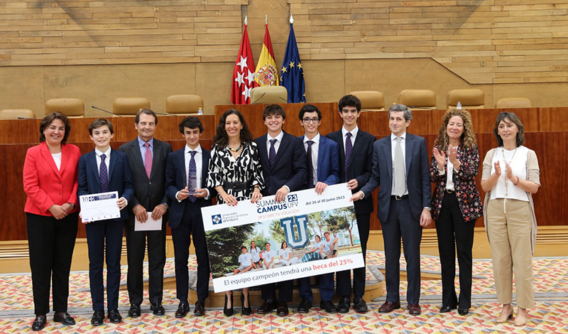 El campus de la Universidad Francisco de Vitoria (UFV) ha acogido una edición más del X Torneo de Debate Escolar UFV cuya semifinal y final han tenido lugar en la Asamblea de Madrid. Los colegios participantes en éstas fueron el Colegio «Retamar», de Pozuelo de Alarcón, y el Colegio «Esclavas del Sagrado Corazón», de Madrid. Se trata de una iniciativa en la que formadores y alumnos trabajan durante más de tres meses preparando sus argumentarios y analizando informes y estudios de referencia.