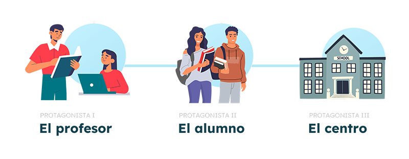 Tenemos tres protagonistas: el docente, el alumno y el centro. Son los tres agentes que intervienen en la enseñanza, todos ellos con un papel único e indispensable