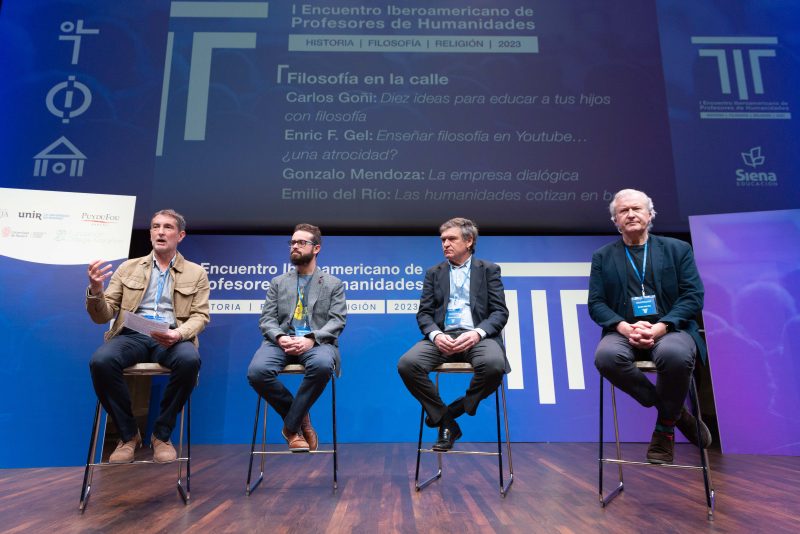El encuentro, que tendrá una segunda edición el 12 de abril de 2024, reunió a más de 600 profesores de España e Iberoamérica, entre ellos, 30 de los mejores docentes de Historia, Filosofía y Religión, que impartieron formaciones y compartieron proyectos y experiencias pedagógicas para hacer más innovadoras las clases de humanidades. A estas tres asignaturas, se sumarán el año que viene Latín, Griego y Literatura. Los docentes también tuvieron oportunidad de dialogar en un espacio donde el youtuber Enric F. Gel, el escritor Carlos Goñi, el activista por las Humanidades Emilio del Río y Gonzalo Mendoza, fundador de la Escuela de Filosofía de Madrid, abordaron la filosofía desde otros escenarios, como las redes sociales, la empresa y la familia.