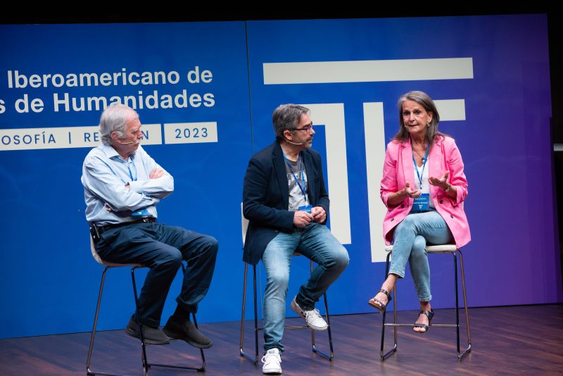 La relación de las humanidades con la tecnología, la salud mental y la literatura fueron los temas que ocuparon los tres conversatorios del encuentro. En el primero de ellos, moderado por el periodista y redactor de MAGISTERIO Rubén Villalba, se abordaron los retos y oportunidades que la inteligencia artificial o el transhumanismo plantean a educadores, familias y alumnos. Participaron Richard Benjamins, responsable de la estrategia de inteligencia artificial de Telefónica, e Ignacio López-Goñi, catedrático de Microbiología.
