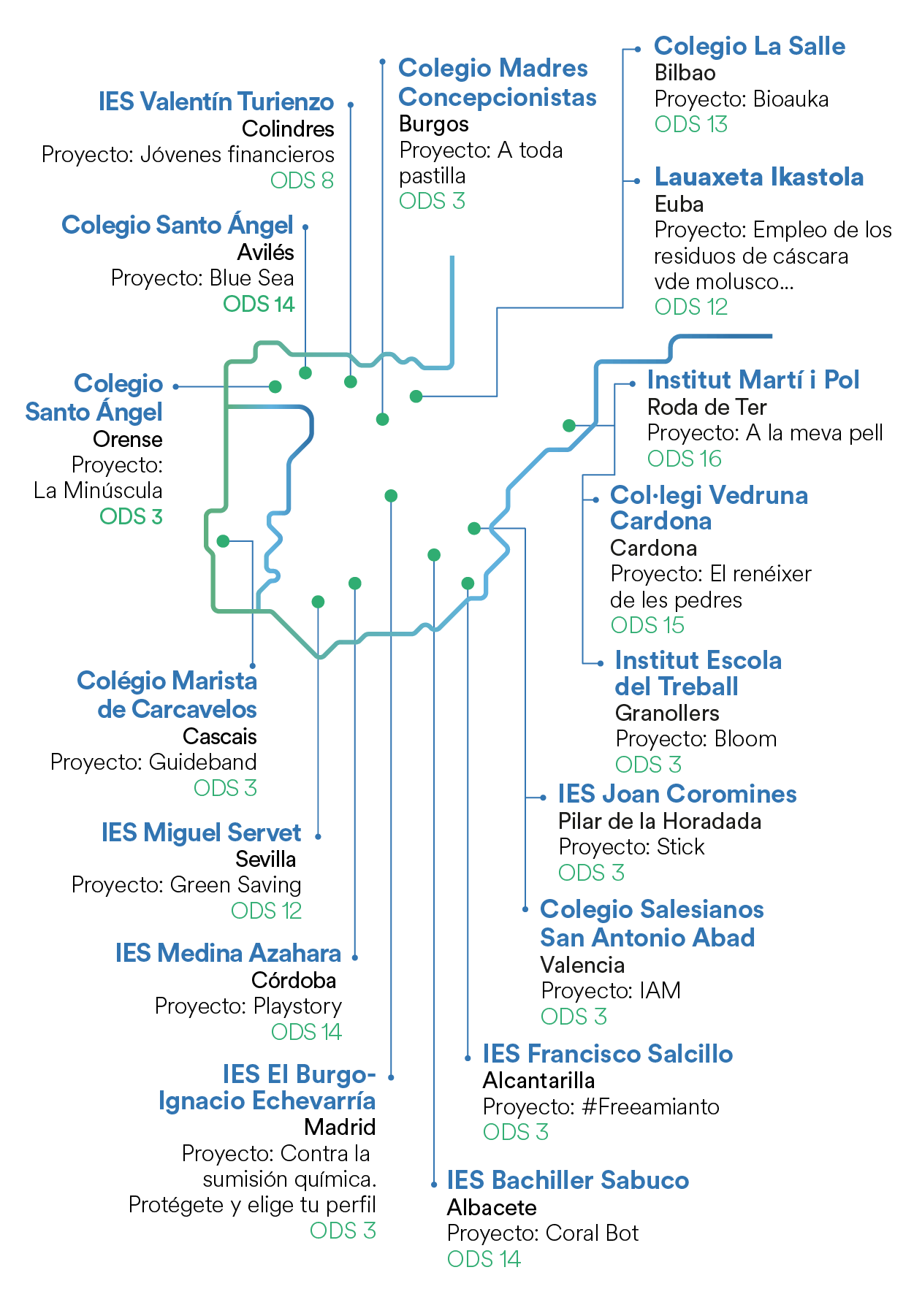 The Challenge de Educaixa acaba de cumplir su primera década de vida, y lo ha hecho con un gran éxito de participación en España y Portugal. Los proyectos recibidos de jóvenes de 3º y 4º de ESO, Bachillerato, FP Básica y FP de Grado Medio han superado los 1.500 entre aplicaciones, campañas o inventos, todos destinados a mejorar el entorno o el bienestar de las personas, en línea con los ODS de Naciones Unidas.