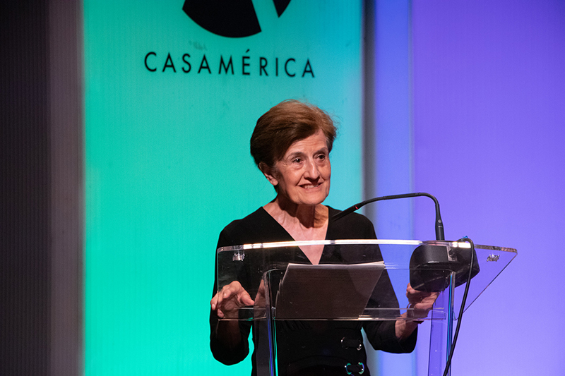 Adela Cortina, durante su conferencia magistral en el Diálogo de Alto Nivel 'Educación en derechos humanos para una ciudadanía democrática: una agenda común de la UE y América Latina'.