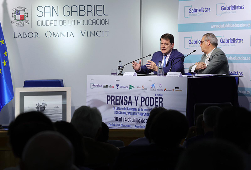 El presidente de la Junta, Alfonso Fernández Mañueco, en la clausura del curso Prensa y Poder en La Aguilera (Burgos).