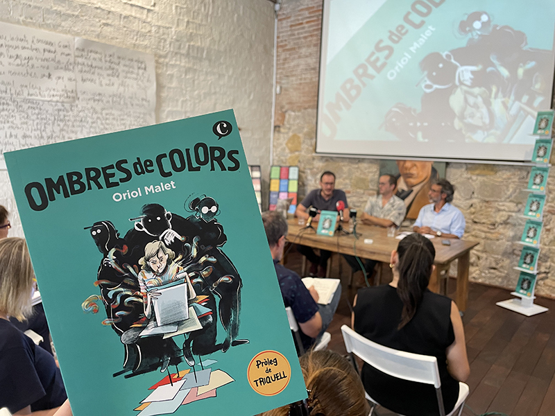 Cris, el/la protagonista del cómic Ombres de colors (Sombras de colores), del ilustrador Oriol Malet, encuentra en el dibujo la razón para retomar sus estudios, lo que el autor plasma en una obra gráfica y con escaso texto que es una llamada a concienciar sobre las altas cifras de abandono escolar y sus consecuencias.