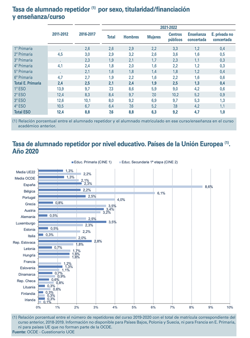 España tiene una de las tasas de repetición más elevadas de la Unión Europea y existe una enorme disparidad en función de la autonomía, del 14% en Cataluña al doble en Andalucía o Castilla-La Mancha.