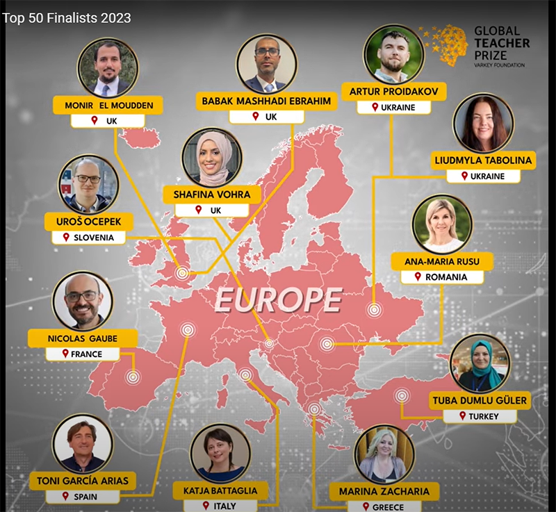 Toni García Arias es el único español finalista en la edición de este año y es uno de los maestros más galardonados de nuestro país. En 2028 fue elegido Mejor Docente de Primaria de los premios Educa Abanca y en 2021 el Global Teacher Award de la AKS Fundation, además de recibir diferentes premios a sus proyectos educativos a lo largo de su carrera. Toni ha escrito varios libros de educación, está considerado por diversas revistas uno de los influencers educativos más reconocidos tanto en España como en Latinoámerica y es colaborador habitual del programa de televisión Horizonte, de Cuatro TV, presentado por Iker Jiménez.