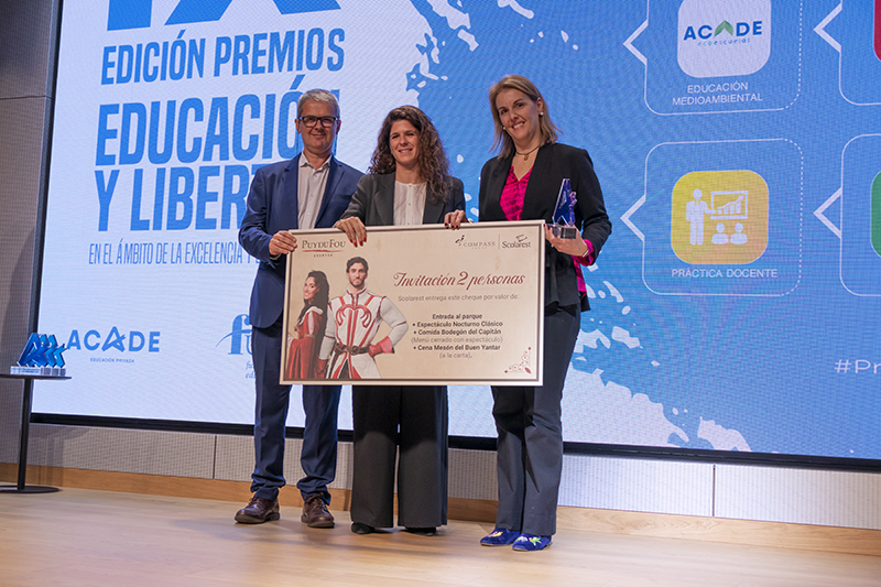 El Grupo Sorolla resultó premiado en la categoría de convivencia y clima escolar. Javier Urra entregó el trofeo, y Laura Conejo, de Scolarest, entregó el premio, una invitación para dos personas a Puy de Fou.