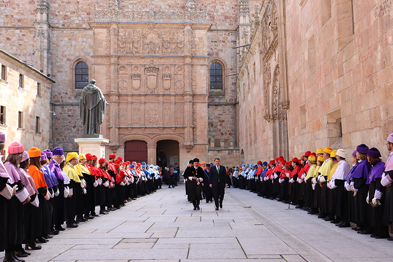 «Frente al ruido de las redes y las múltiples contaminaciones de la memoria, frente a los afanes ilusorios de reescribir la historia, la Universidad de Salamanca quiere agradecer y proclamar contra toda confusión las virtudes de don Miguel de Unamuno: lucidez, frugalidad, justicia, entereza y coherencia», ha dicho Rivero en su discurso.