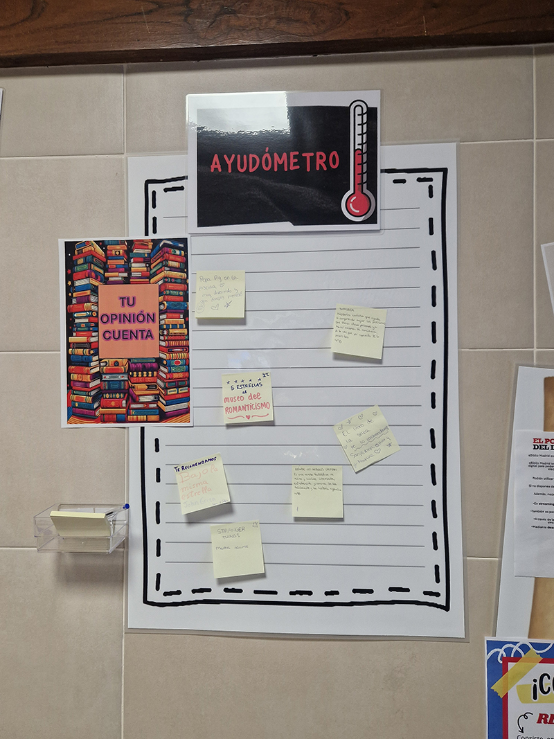- El Ayudómetro: un espacio para que los alumnos expresen, a través de post it, sus recomendaciones, opiniones y sugerencias.