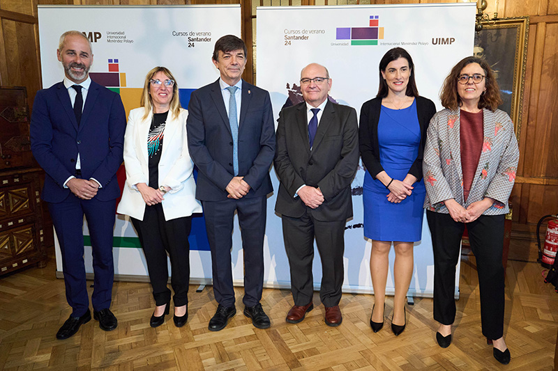 El consejero cántabro (primero por la izquierda) en el acto de presentación de los Cursos de Verano de la UIMP 2024.
