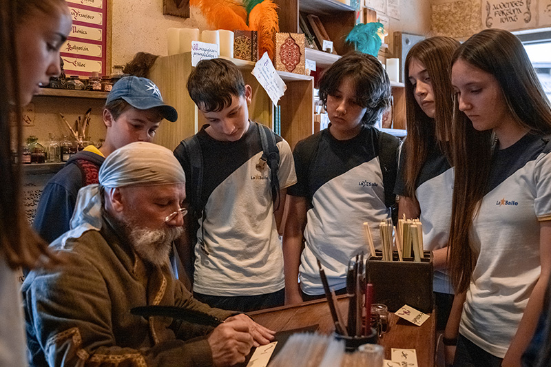 Recomiendan no olvidarse del agua y de «algo de dinero». Nunca se sabe; puedes acabar llevándote a casa, además de la experiencia, unas deliciosas rosquillas, una espada o un marcapáginas elaborado ante ti por un auténtico escribano, como le pasó a Izan.