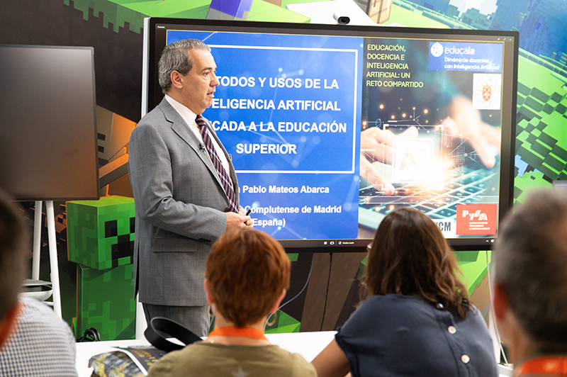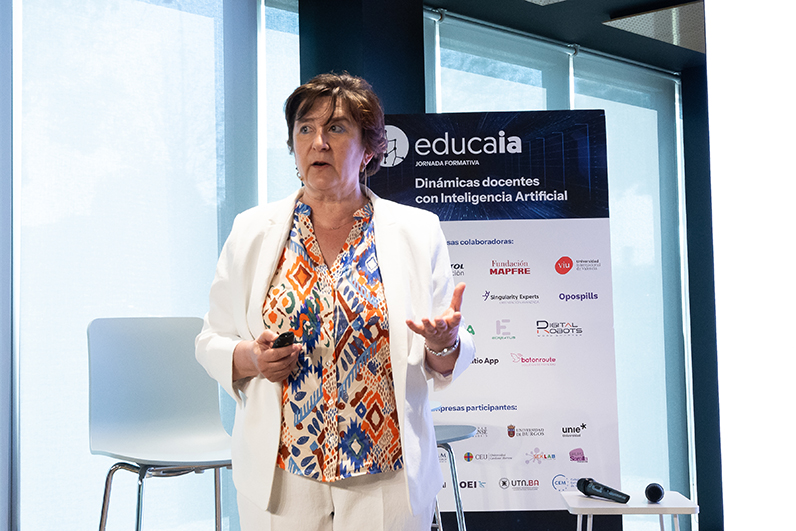 La conferencia inaugural, Desafíos del Humanismo Digital, corrió a cargo de la catedrática del Instituto de Matemática Interdisciplinar de la Universidad Complutense de Madrid Inés María Gómez-Chacón. La experta coincidió en la misma idea de la necesidad de formar al profesor en IA, en pensamiento crítico, en gestión de la incertidumbre, a ser posible desde una perspectiva rica y amplia, que obligue a repensar la condición humana, logrando así una integración lúcida. Al tiempo, hizo un alegato en defensa de la singularidad humana: «La persona no puede convertirse en un robot; no podemos someternos a los algoritmos».