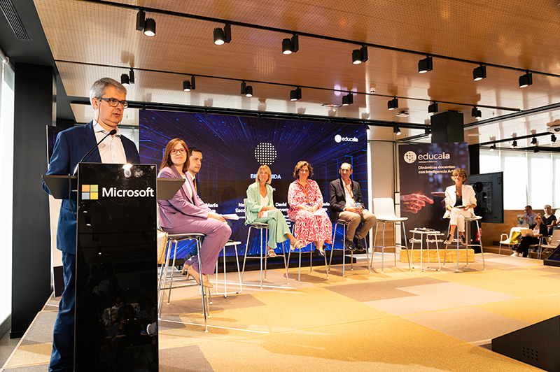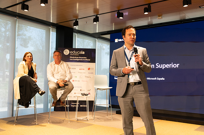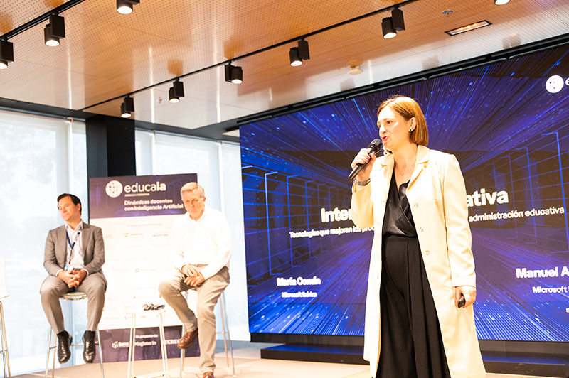 En cómo la IA puede ayudar en los procesos de enseñanza y aprendizaje ahondó María Comín, responsable de Educación Pública y Privada K12 en Microsoft España, que describió todas las posibilidades de Copilot en versión educativa, defendiendo la necesidad de que los docentes «trabajen con IA, aprendan con IA y enseñen a usar bien la IA». A la ciberseguridad, la eficiencia, la creación de contenidos y la adaptación de la oferta formativa de posgrado puede ayudar la IA generativa, prosiguió Manuel Abellán, responsable de educación superior en Microsoft España, que dio paso a José Luis Roig, responsable de CEU Educational Group, que mostró cómo, de la mano de Microsoft, están mejorando y facilitando enormemente el proceso de admisión.