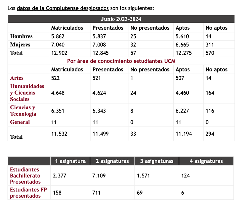 Más de 12.275 estudiantes han superado la EvAU 2024 en la Universidad Complutense de Madrid, lo que supone un 95,5% de aprobados.