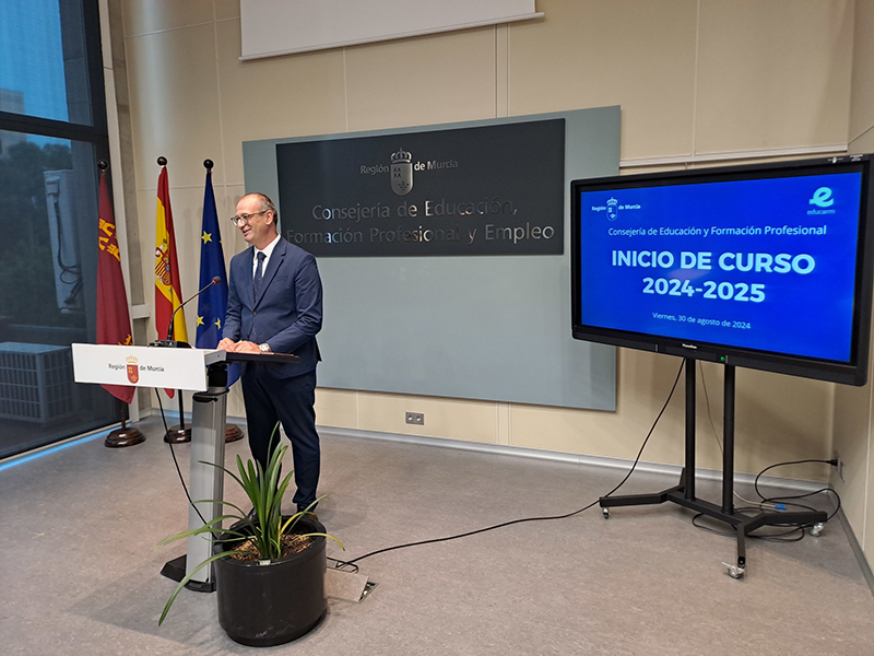 El consejero de Educación y Formación Profesional, Víctor Marín, presentó hoy los datos del nuevo curso escolar y destacó que “las medidas puestas en marcha por el Gobierno de López Miras están permitiendo transformar el sistema educativo de la Región, fortaleciéndolo e incrementando el diálogo y las iniciativas que cuentan con el apoyo mayoritario de la comunidad educativa”.