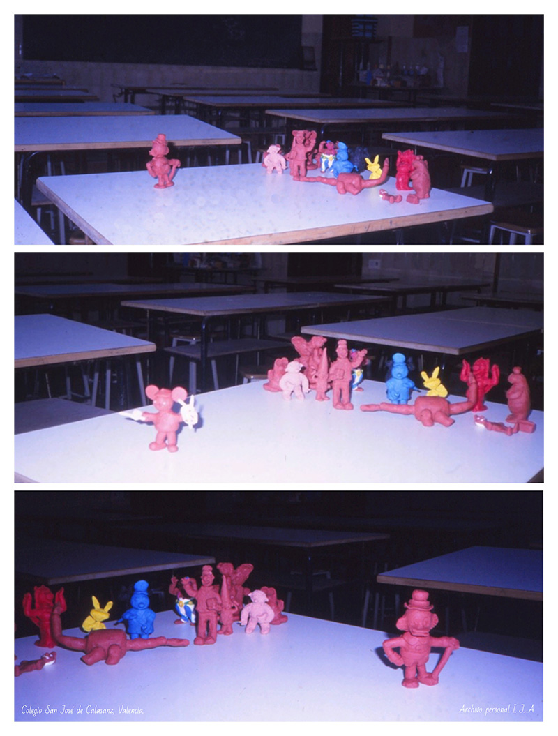 La plastilina es una pasta que se puede modelar fácilmente y casi todos los niños y niñas están familiarizados con ella. En las fotografías podéis ver, entre otros, distintos ejemplos de figuras que imitan la apariencia de personajes en los dibujos animados. Algunas son monocromas y otras combinan varios colores. Todas están realizadas con esmero y dedicación.