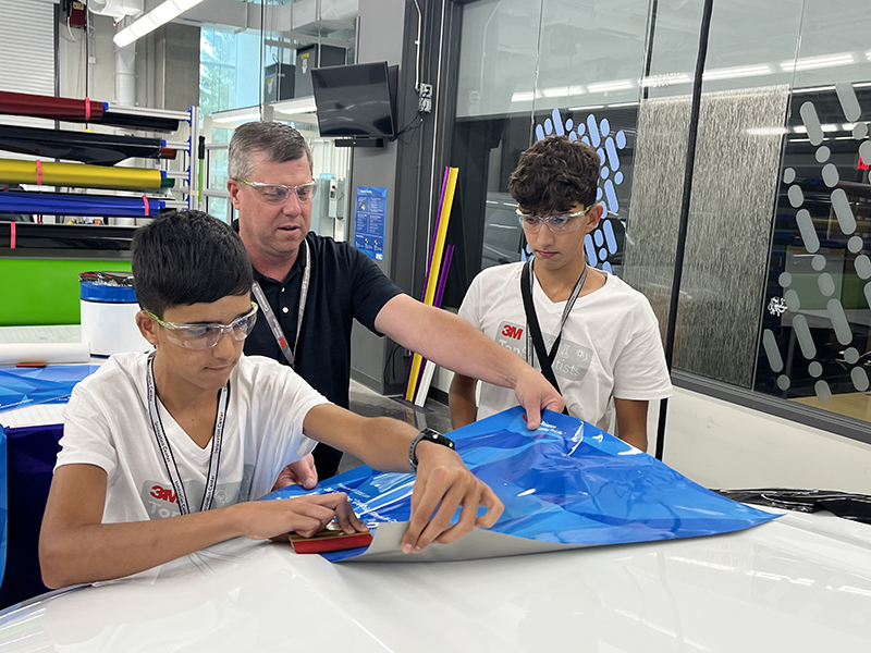 Jorge y Lorenzo pudieron explorar el Centro de Innovación, visitaron cámaras especiales donde se realizan pruebas acústicas y de vibración y tuvieron una sesión práctica muy divertida donde hicieron sus pinitos con técnicas para vinilar coches con los mejores productos del mercado. Nuestros jóvenes científicos demostraron tener grandes habilidades y, por supuesto, ¡muchas ganas de aprender jugando!