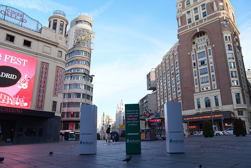 Con motivo del inicio del curso escolar, Educo ha presentado el informe Vuelta al cole, ¿vuelta al comedor?, en el que analiza las dificultades de las familias más vulnerables para asegurar la alimentación de sus hijos e hijas y poder llevarlos al comedor escolar en la escuela pública. En este sentido, y para visibilizar el problema de estas familias, ha instalado tres neveras vacías en la plaza del Callao de Madrid.
