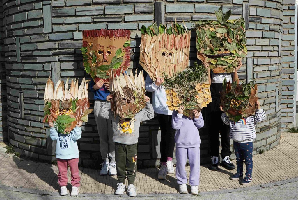 Un grupo de alumnos sostienen unas máscaras creadas para una representación/CENTRO DE ARTE FUNDACIÓN MARÍA JOSÉ JOVE®.