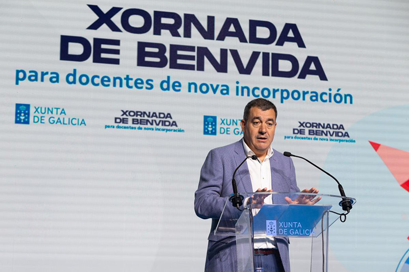 El conselleiro también dio la bienvenida a una nueva generación de maestras y maestros que se incorporan este curso a las aulas gallegas. Lo hizo durante la jornada de recepción para el profesorado que superó este verano el proceso de oposiciones.