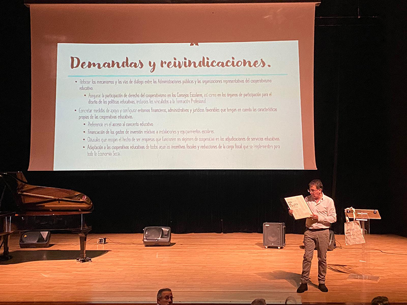 En cuanto a las reivindicaciones, se pide a los poderes públicos -Gobierno, administraciones autonómicas y ayuntamientos-, “reconocer la singularidad, características y el alcance de la labor de las escuelas cooperativas” y, consecuentemente, “que la participación del cooperativismo en el diálogo social, clave para la elaboración de mejores políticas sociales y laborales, también se traslade al mundo de la educación, lo que implica asegurar la participación de derecho de las entidades representativas del cooperativismo educativo en los Consejo Escolares de los diferentes niveles territoriales, así como en todos aquellos espacios y órganos de participación impulsados por las Administraciones para el diseño de las políticas educativas, incluidos los vinculados a la Formación Profesional”.
