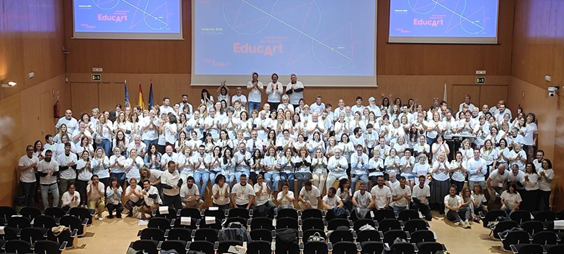 Y, como no podía ser de otra manera, dado que el lema del Congreso era Educación y Arte: el arte de innovar, el arte de incluir, la sesión ha finalizado con dos actividades muy relacionadas con esta temática. Por un lado, la conferencia titulada «La educación artística no son manualidades: el pensamiento artístico como metodología transformadora en la escuela», a cargo de la pedagoga Andrea de Pascual, cofundadora de Pedagogías Invisibles, donde realiza labores de coordinación, diseño e implementación de proyectos en formación docente, mediación cultural e investigación. De Pascual ha abogado por “conectar la educación con la realidad del presente, con los problemas contemporáneos a través de procesos artísticos contemporáneos”.