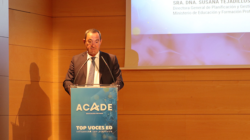 El presidente de Acade, Juan Santiago, en la inauguración del Congreso Top Voces Educación – InfluencIA con Propósito, que se celebra hoy y mañana en Valencia.