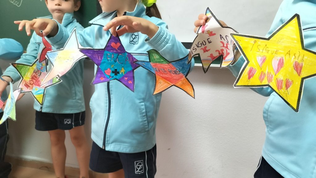 Un grupo de alumnos del Colegio Zola sostiene una banda de estrellas con mensajes motivadores/COLEGIOS ZOLA®.