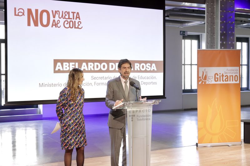 "La No vuelta al cole forma parte de un nuevo Ciclo de campañas de sensibilización social en el ámbito de la Educación, tema prioritario para la Fundación Secretariado Gitano. Esta situación inaceptable se denuncia ante los poderes públicos para reclamar un Plan específico para revertir la situación de fracaso y abandono educativo que sufre el alumnado gitano. También se piden medidas que garanticen la incorporación gratuita de la infancia gitana en las primeras etapas de la Educación Infantil y revertir la segregación escolar que afecta a 1 de cada 3 niños gitanos. La presentación tuvo lugar en el Espacio Fundación Telefónica en Madrid y contó con la participación de Abelardo de la Rosa, secretario de Estado de Educación.