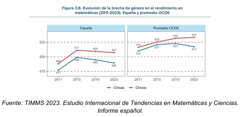 En ciencias mejora algo el panorama, pero en matemáticas es completamente desolador. Recordemos que estamos hablando de alumnado de 4º de Primaria (9-10 años) y constatar unas diferencias así tendría que movilizar acciones inmediatas. Habrá quien diga que con todo lo que se hace sobre género (charlas, referentes, etc.) algo habrá mejorado la cosa. Pues no, la brecha aumenta: