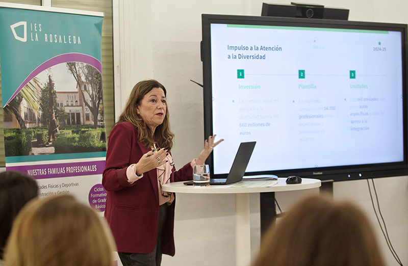 La consejera ha detallado que gracias a este «plan de choque» habrá más docentes de apoyo dentro de las aulas, se formará al profesorado y se podrán organizar visitas educativas fuera de los centros.