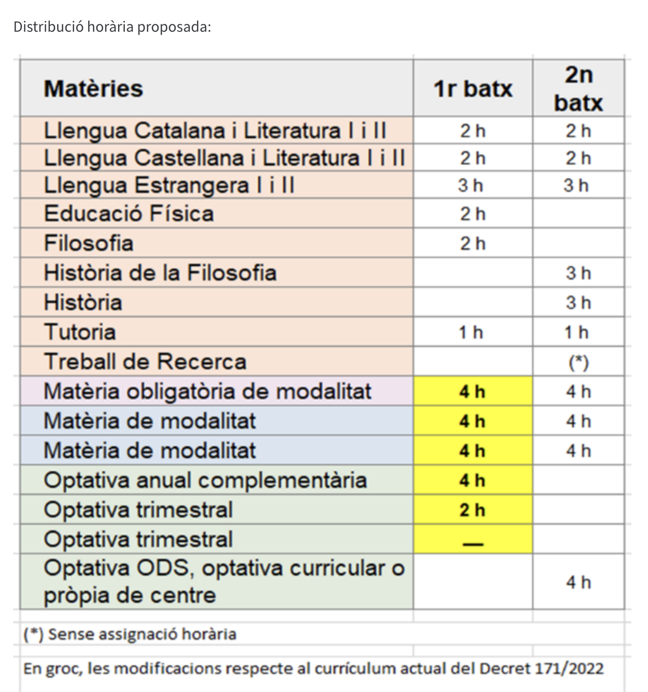 Cataluña propone aumentar las horas de materias de modalidad y reducir las optativas