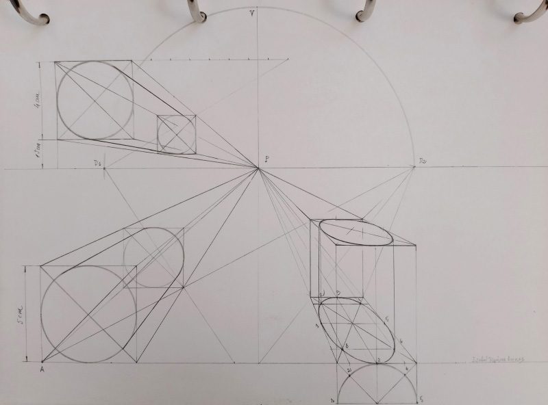 Un modo en el que nuestros alumnos y alumnas pueden aprender a dibujar perspectivas, sin que teman equivocarse, es elegir figuras sencillas y repetir varias veces su representación con distintos puntos de vista. Estos trabajos no serán para entregar, sino que simplemente los supervisaremos y nos aseguraremos de que están correctamente resueltos a nivel técnico. Posteriormente, plantearemos unir trabajo de texturas y volumen con el de perspectiva y este sí será definitivo.