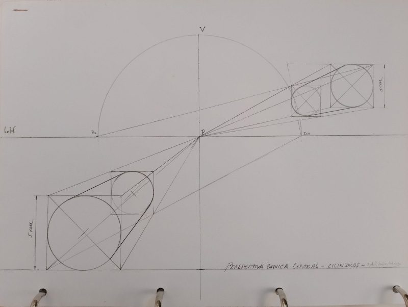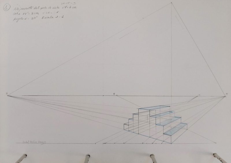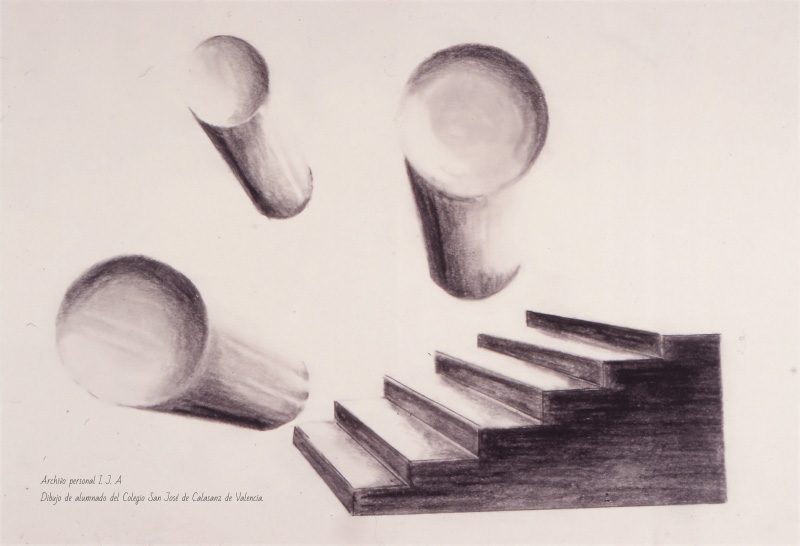 Dentro de la perspectiva cónica, la representación de escaleras y cilindros es un ejercicio básico que puede motivarles. La razón es que permite variación en la composición sin excesivas complicaciones. Variando el punto de vista y el ángulo de pendiente el efecto en el dibujo cambia. Aunque comiencen con representaciones muy sencillas adquirirán conocimientos suficientes para posteriormente, en cursos más avanzados y especializados, representar todo tipo de escaleras, mecánicas, de peldaños, con rampas o de máquinas.