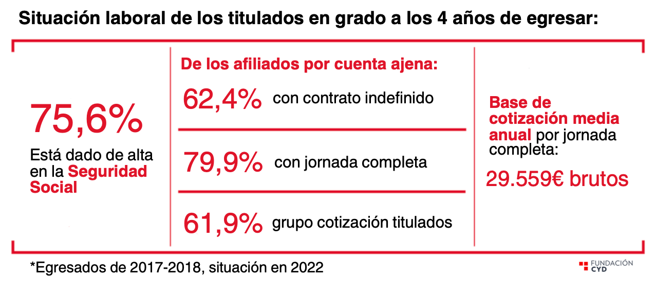 Informe CYD: situación laboral de los titulados universitarios en España a 4 años de terminar el grado