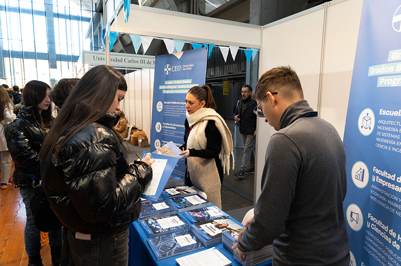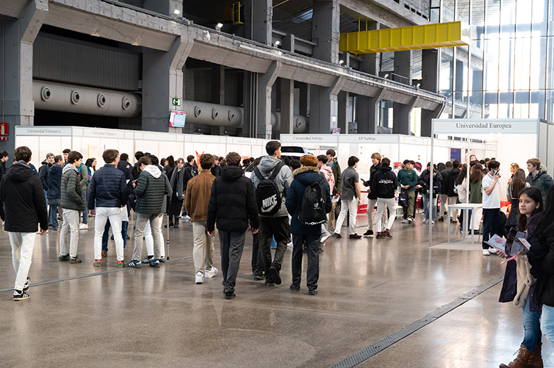La zona de stands de La Nave fue un hervidero de gente a lo largo de la jornada, con estudiantes interesándose por las titulaciones, las becas o los servicios de las 25 instituciones educativas presentes: