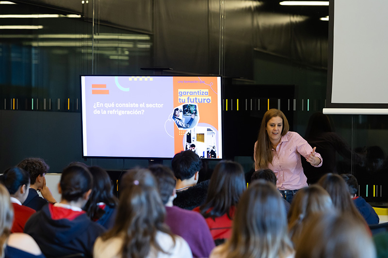 Ana Cobos fue la encargada de recibir a los alumnos en ambas jornadas, con una sesión de orientación previa a las ponencias de las personalidades de reconocido prestigio, en un auditorio repleto por el que fueron desfilando desde la veteranía del arquitecto Alberto Campo Baeza –con sus 50 años de catedrático de Arquitectura a sus espaldas– a la juventud, entre otras, de la investigadora Leyre Iturmendi, que finalizó el Grado en Farmacia en 2023. Personas con trayectorias muy dispares y de campos diversos –Psicología, Medicina, Periodismo, Derecho, Informática, Finanzas…– que ejercieron como referentes para un público ávido de conocer cómo es el día a día en sus profesiones.