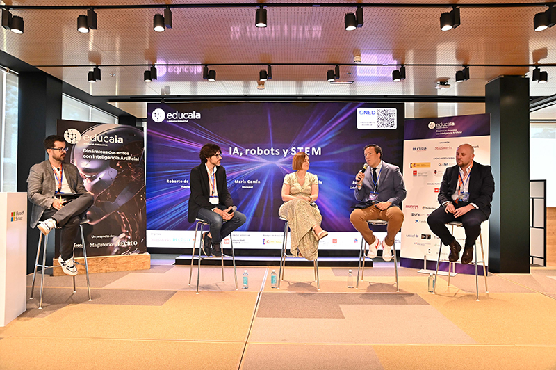 Ponencia, sobre IA, robots y STEM con Roberto de Dalmases (Aulaplaneta), María Comín (Microsoft), Sergio Padilla (Escuela Internacional de Posgrados) y Julio Sandubete (UFV).