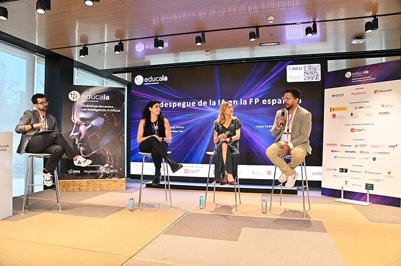 IA y FP con Núria Ferré (ChlorellaNet Tech), Sonia Marzo (Microsoft) y Juan Pablo Montero (La Otra FP PRO2).
