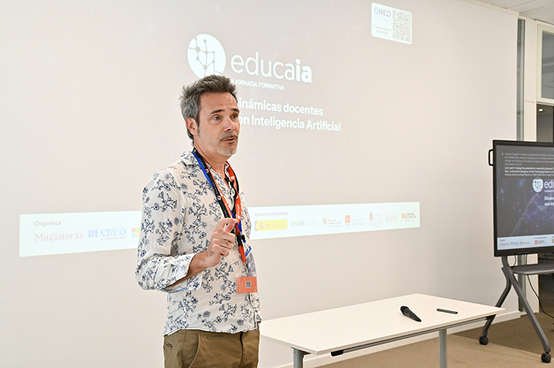 Cristian Ruiz, en un taller sobre alfabetización en IA.