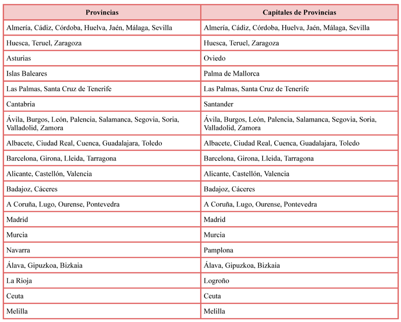 - Completa esta tabla con las CC. AA. y sus respectivas provincias.