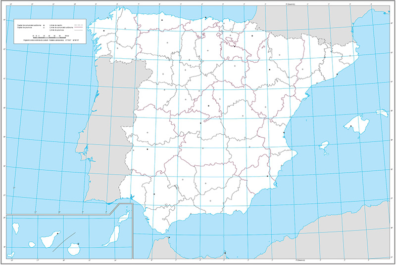 Como se ha mencionado al principio del artículo, el mapa político español se subdivide en dos categorías: comunidades autónomas y provincias. En cada provincia, existe una capital incluida en la representación del mapa. Asimismo, el país cuenta con dos ciudades autónomas: Ceuta y Melilla, situadas en la frontera con Marruecos.